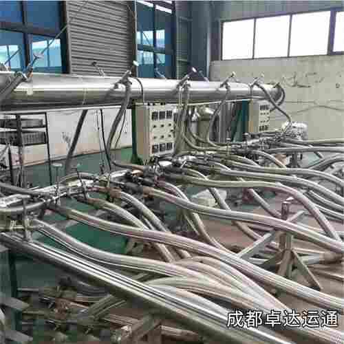 成都卓达运通不锈钢真空软管 (一)真空软管特点: 真空软管技术设计 1.真空软管可以按照现场情况调整供液系统位置,真空软管弯曲半径小 2.保冷效果好,使用时软管外表不结冰、不结霜。 3.真空软管两端配以贮槽和槽车用的快速接头 4.有特殊需求的客户定制特殊结构形式的真空绝热软管 真空软管选材 1.内外层均为特种不锈钢金属软管(304不锈钢) 2.夹层中采用目前*的多层绝热材料 3.导热系数低的支撑 (二)真空软管的运用 真空软管主要运用:槽车冲排液体;贮槽与低温用液设备之间硬连接转换;真空硬管与低温用液设备之间的转换,用于LNG码头上、下船和LNG卸车的输送管,用于导电缆低温环境等。