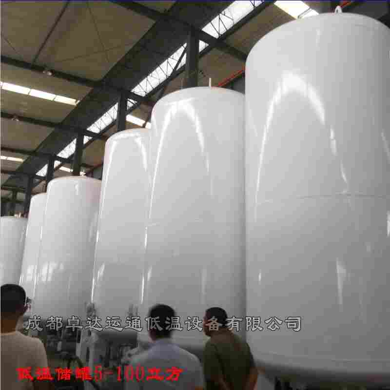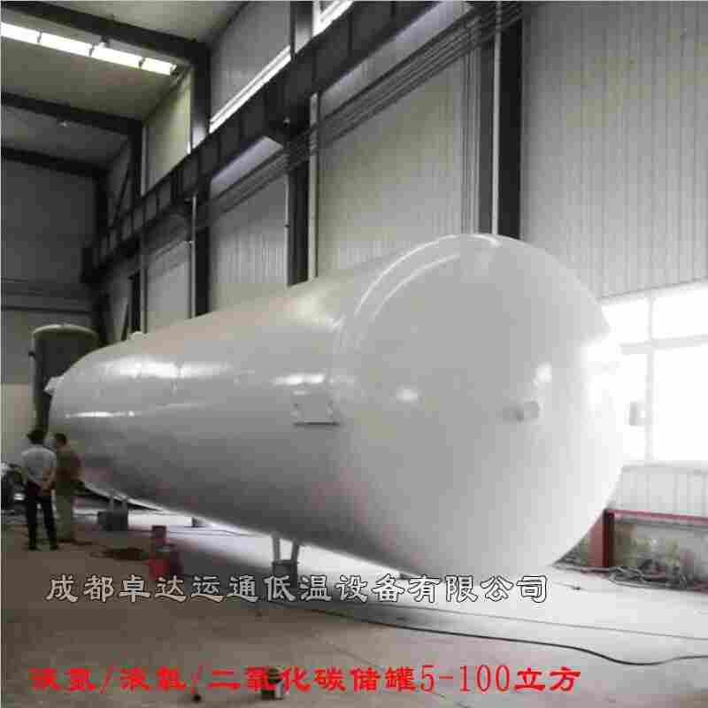 二氧化碳储罐,低温液态二氧化碳储罐,结构为内外容器组成的双层容器,为真空粉末绝热型式,可分立式和卧式两类,内容器材料选 16MnDR ,外容器材料可根据用户地区不同选 Q235-B 或 16MnR ,内、外容器夹层充填绝热材料珠光砂并抽真空。 低温液体二氧化碳储罐采用 “组合、安全系统阀”使用两组安全阀同时工作,在安全阀定期校验时可关闭一侧,另一侧继续工作,确保储罐的安全运行。 储罐下部设置了储罐真空检测、真空规管及真空阀可定期或随时用真空计进行检测夹层真空度,确保储罐的安全运行。